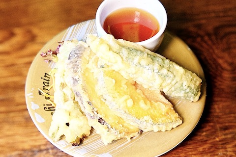 ヴィーガンやヴェジタリアンの利用客も多いことから人気の野菜天ぷら盛り合わせ($6)は、季節によりオクラ、ナス、カボチャ、ニンジンなどが入り、食材が高騰している昨今、$6は破格値ともいえる。