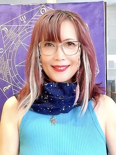 そんなマキさんからお招きを受け、ジャパラリア記者も興味津々でマキさんのセプタグラムソウルジャーニーリーディング・セッションを体験させてもらった。まずセッションを受ける数日前に相談者は自分の①フルネイム、②生年月日(西暦)、③(分かっていれば)生まれた時間、④生まれた県と町の名称をマキさんに伝えておき、セッション当日、マキさんが占星術の観点から割り出したそれぞれの相談者の非常に事細かなバース・チャートを、それも1種類だけではなく何種類も、さらにはそれらチャートを基にマキさんがA4紙1枚にびっしり手書きで書き込んだ分析結果を事前に用意しておいてくれ、そこから対面またはオンラインでのセッションがスタートする。つまり、いざセッションが始まってからマキさんにあれこれ質問されることはなく、いきなり本題に入るというわけで、1時間15分の占星術とカード・リーディングのセッション($245/占星術のみだと$185)に無駄な時間は一切なし。しかも$245のセッションも2025年4月いっぱいまでの予約時に「ジャパラリアを見た」で$60 OFF、つまり占星術のみと同じ$185で受けられる!