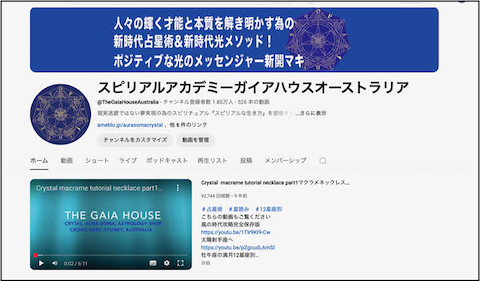 チャンネル登録者数2万人以上のガイア・ハウスの公式YouTubeチャンネル(@TheGaiaHouseAustralia)