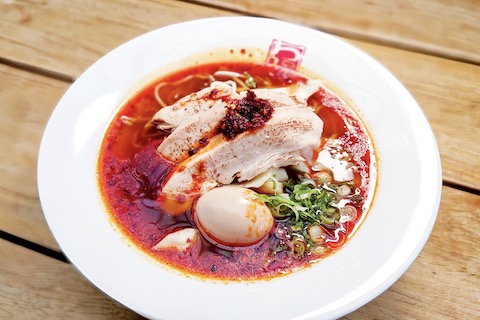 場所柄グルテンフリー派の客層も多く、まんぷくの人気ラーメンのひとつであるまんぷくレッドとは別に、ローズベリー店オリジナルのスパイシー・ディアブル(フランス語で悪魔という意味!)・チキンガラ($28)は、通常の麺でなくグルテンフリー麺を選ぶと100%グルテンフリーのラーメンとなる。自家製チリ・オイルを使用したスパイシーなスープに、改良を重ねた自慢のグルテンフリー麺がよく絡み、肉はチャーシューではなく香ばしく炙った鶏肉が載る。スープは初めはそこまで辛くないが、後から花椒(ホアジャオ)のピリピリッとした刺激が。ゆでたキャベツやモヤシも肉の下に隠れており、グルテンフリーでない人も一度は試したい美味しさ。