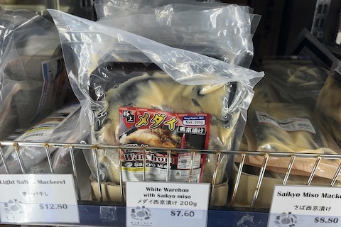自社工場で作る冷凍食品の中でも人気のメダイの西京漬け(200g: $7.60)