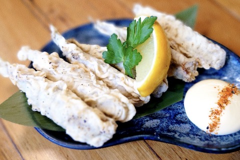 以前はシドニーではめったに見かけなかった子持ちししゃもの唐揚げ($9.50)は、フリッターのように揚げたししゃもが熱々でかじると中から湯気が出てくるほど。プチプチとした魚卵の食感が心地良く、青魚特有の旨みが凝縮。レモンを絞って、または七味マヨで召し上がれ。