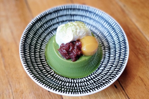デザートの抹茶プリン($8.50)は近年のシドニーの抹茶ブームの中でもさすがといった味わい。きめ細かいプリンは抹茶の苦みがしっかりと感じられ、生クリームは軽い後味。栗の甘露煮とアズキも甘さ控えめで食後にぴったり。