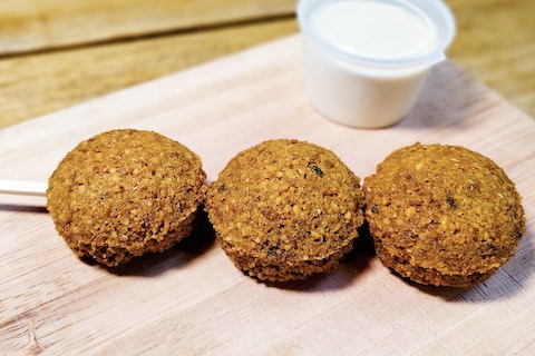 ファラフェル・スキュワー($5/タヒニ・ソース付き)