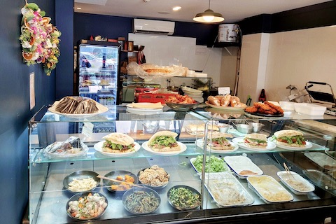 おにぎり2個(取材時は梅とネギ味噌)にメインをサバ味噌か唐揚げから選べ、日替わりのさまざまなおばんざいが付いた新メニューのおばんざいプレイト($18)が既に大人気。取材時にはサトイモの煮物、大根サラダ、カボチャの煮物、キュウリの塩昆布和えなど野菜がたっぷり盛られ、これらおばんざいは1〜2種類をフルサイズの容器にギッシリ詰めてテイクアウェイすることも可能($15)。