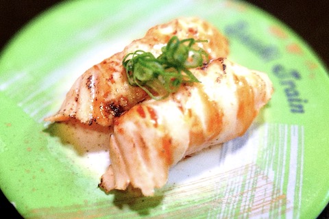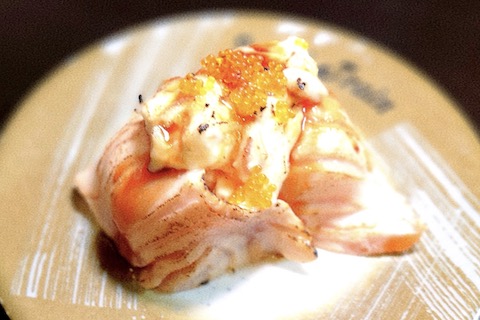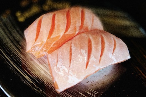 驚きの厚さのサーモン・ベリーの握り寿司($8)