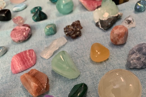「アート・セラピーはこちらが用意したクレヨンや色鉛筆を使って画用紙に思いついたまま絵を描いてもらい、そこからご本人がそれを読み解いていくセッションで、絵心がなくても全く問題ありません。クリスタル・リーディングはアメリカ人のジェインアン・ダウ氏が考案した方法で、さまざまな色や形の石の中から気になる何個かを選んでやはり目の前の卓上の思い思いの場所に置いてもらって私がその方と一緒に読み解いていきます。石にも人間にも振動がありますが、石の振動はどんな状況でも変わりません。対して人間の振動はその時その時で変わり、どの振動の石を選ぶかがその人の今の心理状態を物語ることがあるんです」