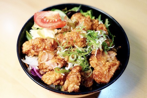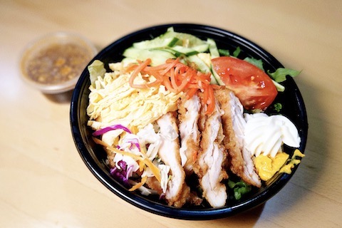 こちらも期間限定・新メニューの油淋鶏(ユーリンチー)丼($17)もイチ押し。熱々の唐揚げにまろやかな酸味の特製ソースを絡めてあり、上にはネギが添えられる。下味がしっかりついた唐揚げと特製ソースで美味しさ倍増。下には紫キャベツやニンジン、レタス、ミックスサラダも入って栄養バランスの点でも文句なしの、食べ始めたら止まらなくなる一品。