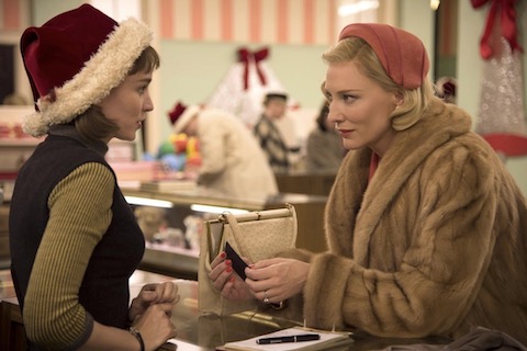 テレーズ(ルーニー・マーラ:左)が働く百貨店のおもちゃ売り場にキャロル(ケイト・ブランシェット)が買い物にきて二人は出会う