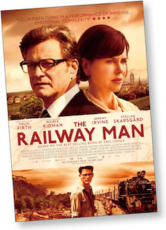 映画は第二次大戦終結から35年後の1980年、退役軍人エリック・ローマクス(コリン・ファース)がイギリスの長距離列車内の向き合って座る座席で、旅行中だったイギリス生まれのカナダ人女性パトリシア(ニコール・キッドマン)と出会うところから始まる。車中、意気投合するも自分の目的地の駅に到着したエリックはパトリシアに別れを告げ下車するが、列車が発車してすぐエリックはパトリシアに恋に落ちたことに気づく。鉄道マニアの彼は、彼女がエリックと出会った際に向かっていた街から「次は来週の水曜にこの街に行く」と言っていた路線が日に2本しかないことを知っていたためそこへ出向き、列車から降りてきたパトリシアと再会する。彼女も初めて会った時からエリックに好意を抱いており、こうして61歳の新郎と44歳の新婦が誕生する。とまあ、ロマンティックな“熟年恋愛映画”のような最初の10分なのだが、新婚早々エリックは、戦時中の1942年に日本軍の捕虜となった後に日本兵から受けた拷問のフラッシュバックに悩まされるようになり、そこから先は一転して完全シリアスなドラマとなる。エリックは心的外傷後ストレス障害(PTSD)の典型的かつ深刻な症状を抱えていたわけで、映画は現代(1980〜90年代前半)と戦中の両方を交互に見せる手法で展開し、中年時代と青年時代どちらの俳優も全員、見事な演技力で観る者をグイグイ引っ張る。そんな中、紅一点のパトリシアを演じたニコール・キッドマンも素晴らしく、愛する夫エリックを救いたいと願いながらも夫が戦争体験を一切話そうとせず、戦争のことに関してのみ妻である自分に対しても頑なに心を閉ざすエリックを前に苦悩する役柄を、さすがオスカー女優の説得力で見せてくれる。