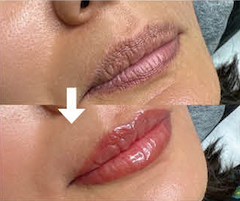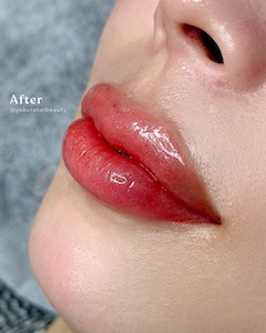 韓国式に対してこちら通常のリップブラシは、日本人にも多いが色素沈着により唇の輪郭が黒っぽかったり、もともと唇が薄い人のため、色をトーンアップさせたり唇の形をボリューミーにと修正してくれる。料金は6週間後のタッチアップ込みで$880。